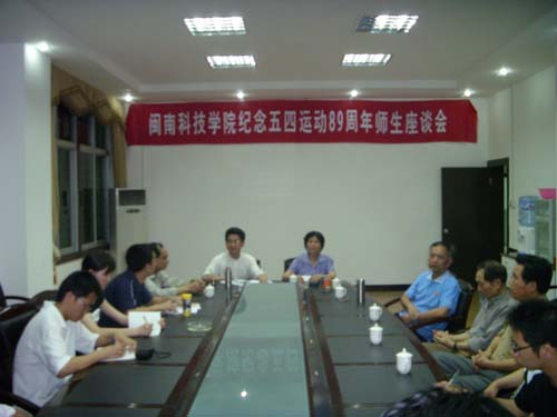 5月4日,我院关工委与院团委联合举办纪念五四运动89周年暨学习户胡锦涛总书记在北大讲话精神的师生座谈会。名誉院长陈兰孙教授、院党委副书记陈振祯副教授、院关工委主任方幼兰教授、关工委老同志、学生代表三十余人参了加座谈会。座谈会由学院团委负责人刘武强老师主持。
