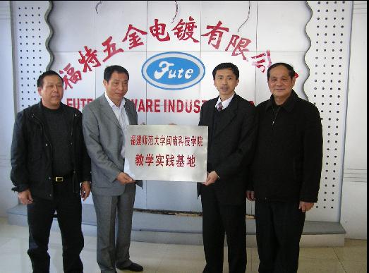 3月4日上午,我院副院长肖华山教授和教务部张永祥主任驱车前往石狮市福特五金有限公司参加教学实践基地的挂牌仪式。石狮市福特五金有限公司电镀厂是福建知名的电镀厂,该企业为富贵鸟、奥康等众多国内知名企业厂家的产品进行电镀加工。此次挂牌作为乐鱼网页版登录入口_乐鱼(中国)教学实践基地之一,不仅能够给我院生化工程系的学生提供教学实践场所,同时也促进我院与企业合作教学。