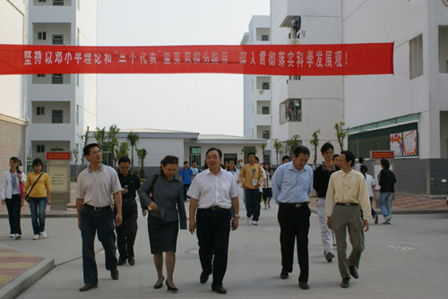 施祖美、孙银聪在学院领导的陪同下参观校园