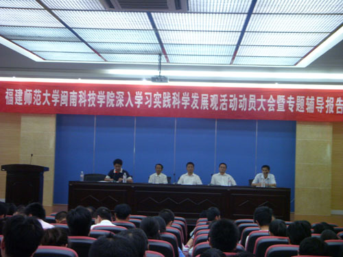 动员大会之后,林书记还结合学院实际作了《以科学发展观促进学院快速发展》专题辅导报告,报告要求全院党员干部要通过学习实践科学发展观活动进一步焕发出强烈的责任感、使命感和科学发展的紧迫感,进一步把广大全校师生员工团结凝聚起来,努力推动学院事业又好又快发展,为建设海峡西岸两个先行区作出新的更大贡献!