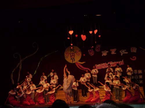 三、体现了原创精神和时代精神。我们很多节目是由老师或同学们自编自导,比如,《感恩的心》,把全院师生抗震救灾的心声和情感用话剧、朗诵的形式表现出来,很及时,很到位,很感人;《奥运精神》把全国人民迎奥运,盼奥运,祝福北京、祝福奥运成功的精神体现出来;《四季之恋》是我们师生自己创作的,具有较高的英语水平和欣赏价值。