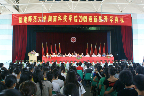 金秋时节,校园一片喜气洋洋。9月13日上午,我院在学生活动中心隆重举行福建师范大学乐鱼网页版登录入口_乐鱼(中国)2009级新生开学典礼。南安市委副书记、教育工委书记曾焕楷先生,乐鱼网页版登录入口_乐鱼(中国)常务副董事长戴新民先生,福建师范大学副校长许明教授,《人民日报》事业发展部副主任黄敬先生,南安市教育局局长吴亚明先生,南安市外经贸局局长柯文宝先生,南安市康美镇党委书记王强乐先生,南安市康美镇镇长吴长流先生、学院法人代表戴宽南先生、福建师范大学办公室主任郭警修先生、学工部部长廖深基先生、后管处处长张振华先生、教务处副处长陈祖祺先生、团委书记涂荣先生、闽台研究中心主任谢必震教授等领导、嘉宾出席了开学典礼。各合作学院领导、专业负责人、我院全体党政领导及各系部负责人也参加了典礼。开学典礼由学院党委常务副书记林国庆主持。