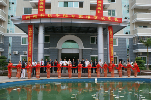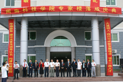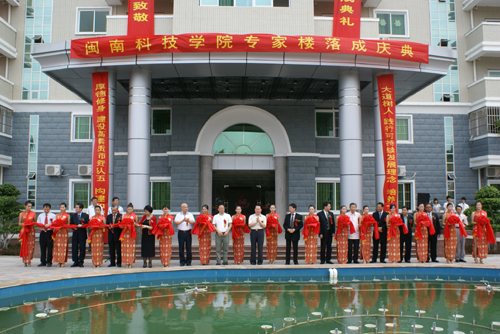 9月9日下午,我院隆重举行专家楼落成典礼。菲华各界联合会主席、学院董事长戴宏达先生、福建师范大学党委书记张金栋研究员、南安市委副书记、教育工委书记曾焕楷先生、南安市人民政府副市长李清安先生、菲华各界联合会常务顾问、学院常务副董事长戴新民先生、福建师范大学副校长许明教授,以及各级领导、菲华各界海峡西岸访问团全体成员、学院全体董事、学院党政领导等出席了剪彩典礼。学院师生代表500多人一同参加了落成典礼。学院党委常务副书记林国庆主持典礼。