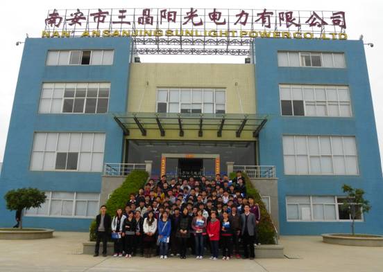 学生此次重点参观的南安三晶阳光电力有限公司成立于2007年7月,其专业从事物理法太阳能级硅材料的应用加工。目前已建设了福建省政府扶持的25MW太阳能光伏公共试验平台,并且联合中科院福建省物质结构研究所,共同研发了高效率太阳能电池的制作,物理法太阳能级硅材料的拉晶,多晶铸锭以及多线切割工艺,并进行物理法太阳能级硅片的电池制作工艺研究。公司产品包括单晶硅棒、多晶硅锭、硅片、电池片、电池组件等。