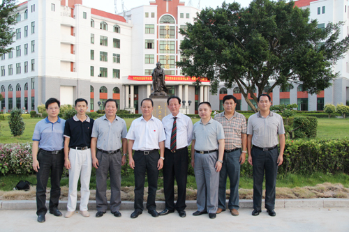 (罗萤书记与学院常务副董事长戴新民、党政领导、董事长助理戴景星合影)