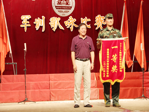 9月23日晚,我院2012级新生军训歌咏比赛在学生活动中心拉开序幕,21支参赛队伍参加演出。学院院长郭丹、党委常务副书记林明旭、党委副书记李彬源等领导及有关老师担当了本次比赛的评委。