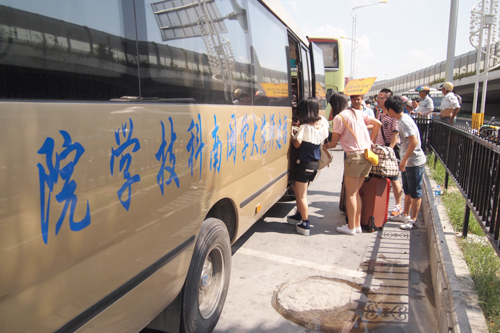 汽车站里人流量大,尤其许多院校都在站内设立迎新点,学院的迎新志愿者用积极和热心克服接待难度,来回奔跑,提醒新生注意安全,确保没有物品丢失和人员走失。接待工作开始没多久,志愿者的汗水已经浸湿衣服。