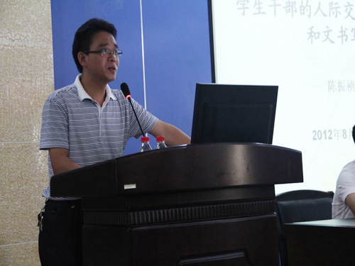 30日上午,学院原党委副书记陈振祯教授担任主讲的《学生干部的人际交往和口才培养》讲座在学术报告厅举行。他向在场学生干部强调了人际关系的重要性和必要性,好的人际关系能够营造良好的学习和工作氛围。他例举了人际交往中常见误区,具体分析“摆架子---自视高人一等”、“行单干---不善于发动集体力量”、“搞双标准---言行不一”等误区的弊端,并相应地提出建立良好的人际关系的要诀。强调了在人际交往中的艺术和礼仪等注意事项,以及如何协调工作中的人际关系的方法。陈书记还建议学生干部们要加强知识积累、培养严密的逻辑思维、注重语言表达的技巧等方法来提高口才能力。