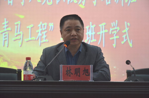 开学式在庄严的国歌声中拉开帷幕。林明旭在开学式上代表学院党委、党校对培训班开班表示祝贺。他说,学员们参加入党积极分子培训和“青马工程”培训,不仅是一次难得的学习机会,也是大学政治生活的一件大事,更是在人生道路迈出的重要一步。他向全体学员们提出了三点希望:一要加强学习,努力提升自身的思想政治素质;二要端正入党动机,树立正确的世界观、人生观和价值观;三是要遵守纪律,切实提高培训的实效性。