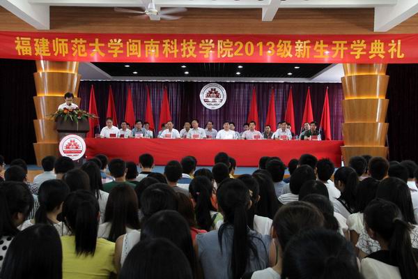 9月16日上午,我院2013级新生开学典礼先后在美林校区和康美校区学生活动中心隆重举行。南安市委副书记、教育工委书记林荣忠,南安市副市长李清安,南安市教育局局长吴亚明,康美镇党委书记黄少伟,美林街道人大主席魏国美;学院名誉院长陈兰荪,学院副董事长戴宽南,院领导邱永渠、林明旭、周勇军、李彬源、吴勇;各系、部负责人,机关教辅各部门负责人和2013级全体新生参加了开学典礼。开学典礼由党委常务副书记林明旭主持。