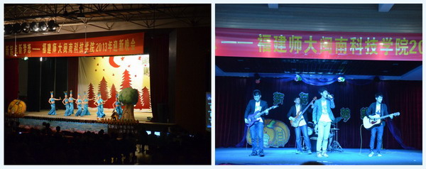 晚会在柏拉图乐队演唱的《the man who sold the world》中拉开序幕,动感的节拍瞬间点燃现场。随后,健美操《火》、话剧《悲与喜》、武术《武道魂》、舞蹈《彩云之南》、轮滑《脚尖上的滑尔兹》、歌曲串烧《梦一直都在》、时装秀《魅惑之夜》以及花样跳绳《舞动花样,绳彩飞扬》等节目演绎出闽科校园生活的精彩纷呈,展现了我院大学生青春向上的朝气;刘颖琳老师表演的歌舞《爱在天地间》,华清、卢月云和郑杜巍三位老师演唱的《康美之恋》也为新生们带来丰盛的视听盛宴,将晚会推向高潮。