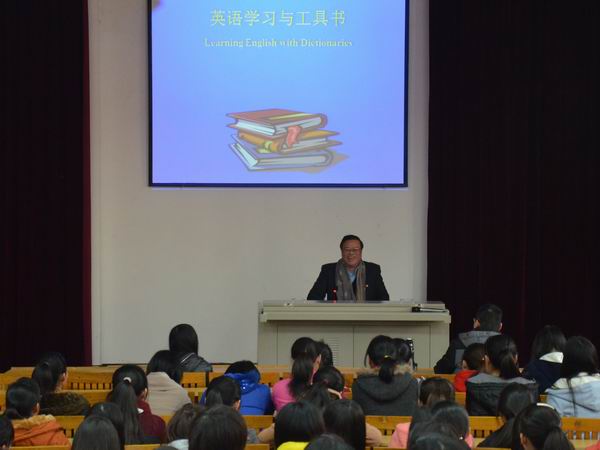 12月27日下午,“乐鱼网页版登录入口_乐鱼(中国)”邀请厦门大学外文学院副院长、博士生导师吴建平教授,在美林校区阶梯教室做了题为“英语学习与工具书”的讲座。讲座由学院副院长吴勇主持。