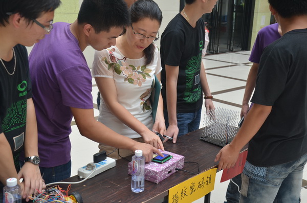 光电信息科学系主任杨文琴教授介绍说,此次展出的设计作品,凝聚了电子创新实验室同学们诸多心血和汗水,展示了光电信息科学系同学们积极创新,勇于创造的品格。 (新闻宣传中心)