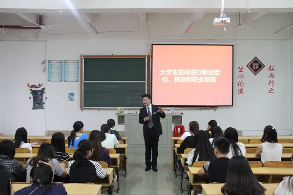 讲座上,李总监分析了大学生职业定位、选择、发展,表示目前就业形势严峻,同学们要做到理性认识自己,明确择业目标,确立信仰及价值观,建立自己的核心意识;要扎实学好专业基础,锻炼受挫能力,百折不挠。他鼓励同学们积极参与实践,努力做到“学以致用、身体力行、知行合一”。
