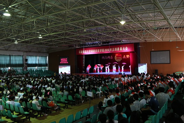 5月4日下午,我院隆重举行“向上向善,点赞青春”2016年五四表彰大会。院领导邱永渠、林明旭、周勇军、李彬源、吴勇,各系部负责人、机关教辅各部门负责人、各系团总支书记、受表彰学生代表和2015级全体学生参加了大会。大会由院团委书记庄天怀主持。