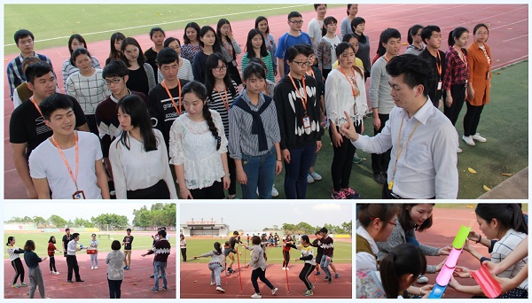 实训课中,通过“不倒森林”、“能量速递”、“击鼓颠球”和“我是最棒的”四个小游戏,训练成员之间的默契度及专注力。实训现场气氛热烈,同学们的欢呼声、加油声将活动推向高潮。