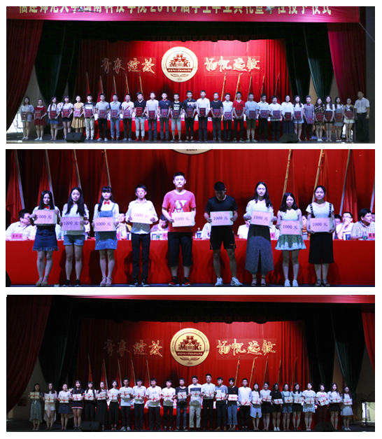 学院副院长吴勇代表学院为毕业生颁发毕业证书;领导、来宾为考取研究生同学颁发奖金,为优秀毕业生颁发荣誉证书。