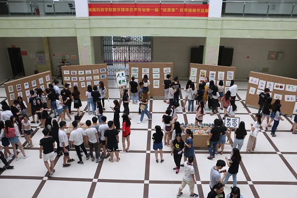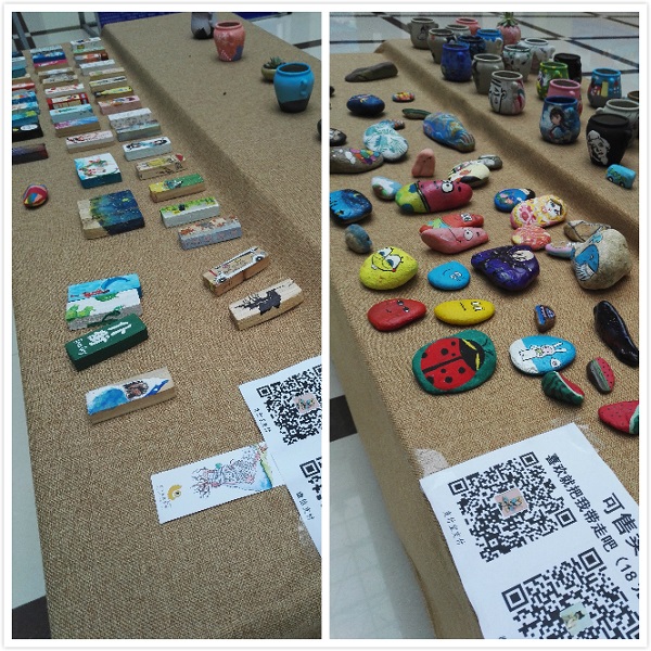 6月5日-10日,计算机科学系2015级数字媒体艺术专业学科竞赛“绘青春”优秀插画作品展及文创手礼研发作品、销售体验活动在图书馆举行。现场设置了作品展区、销售区、留言区、手绘体验区,作品包括手绘插画、石头彩绘、陶罐彩绘、木头彩绘等。