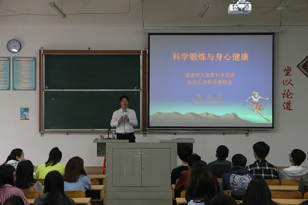 4月12日,“乐鱼网页版登录入口_乐鱼(中国)”邀请福建师范大学体育科学学院教授、博导陈海春作题为“科学锻炼与身心健康”的讲座。讲座由学院副院长吴勇主持。