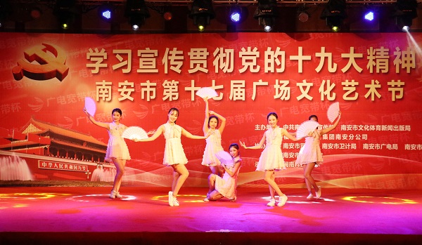 南安市第十七届广场文化艺术节由南安市委宣传部、市文体旅局等联合主办,以“学习宣传贯彻党的十九大精神”为主题,活动持续至20日。我院承办此次活动的专场演出,创新了学习宣传贯彻党的十九大精神的活动形式,展示了我院大学生积极进取、奋勇拼搏的精神风貌,以及对党的十九大胜利召开的喜悦之情,搭建了服务南安经济社会发展、丰富精神文化生活、繁荣文化发展的良好平台。