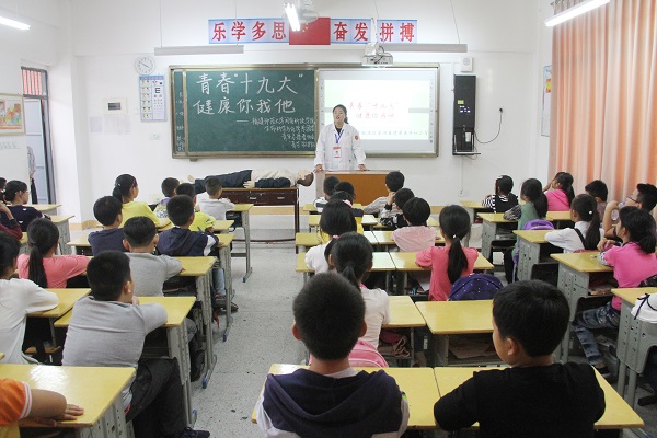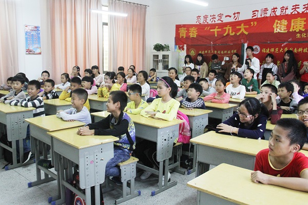 11月8日,我院生命科学与化学系团委青年志愿者协会“青芒”救护队联合学院医务所,前往南安市康美中心小学,开展了“青春十九大,健康你我他——急救知识进校园”的活动,邀请了医务所所长张勇、医生周德馨为学生们授课。