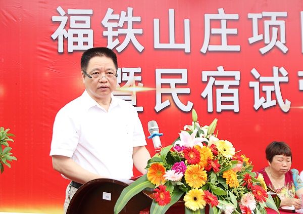 启动仪式上,学院党委常务副书记林明旭在讲话中对福铁山庄项目启动表示祝贺。他说,近年来我院积极探索产教融合、协同育人的人才培养新模式,福铁山庄项目在顺应“大众创业,万众创新”号召的同时,紧扣国家乡村振兴主题,大力推进村校合作,实现村校优势互补、互利共赢的局面。学院将继续探索大学生三创工作及乡村振兴战略相融合的发展模式,使我院大学生创新创业工作再上一个台阶。