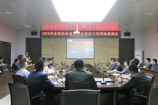 2018年全国和全省大学生征兵工作网络视频会议于4月3日上午召开,我院在图书馆评建办设视频分会场。南安市武装部部长齐建伟、安溪县人民武装部部长赵超群、永春县人民武装部部长郑川辉,院领导张杰、林明旭、俞建群出席会议,学院征兵工作领导小组,师生代表等60余人收看了会议实况。