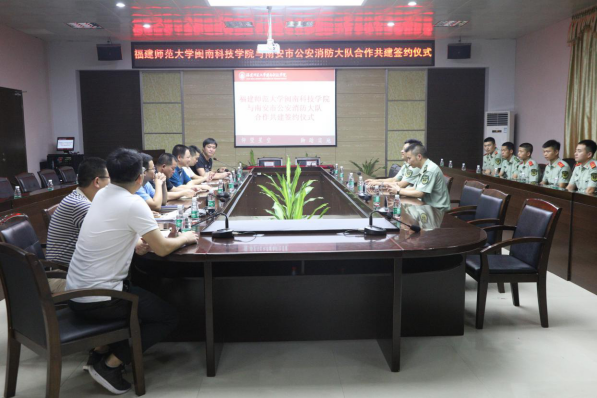 签约仪式上,甘代辉教导员介绍了南安市公安消防大队的基本情况,他指出,闽科作为南安市唯一一所本科高校,拥有良好的教学环境和丰富的教学资源,双方签订共建协议,可以为学院师生提供消防安全教育及演练,也能发挥学院教学资源,实现警校资源整合、优势互补,切实做好新时期双拥共建工作,促进地方和部队建设起到积极的推动作用。