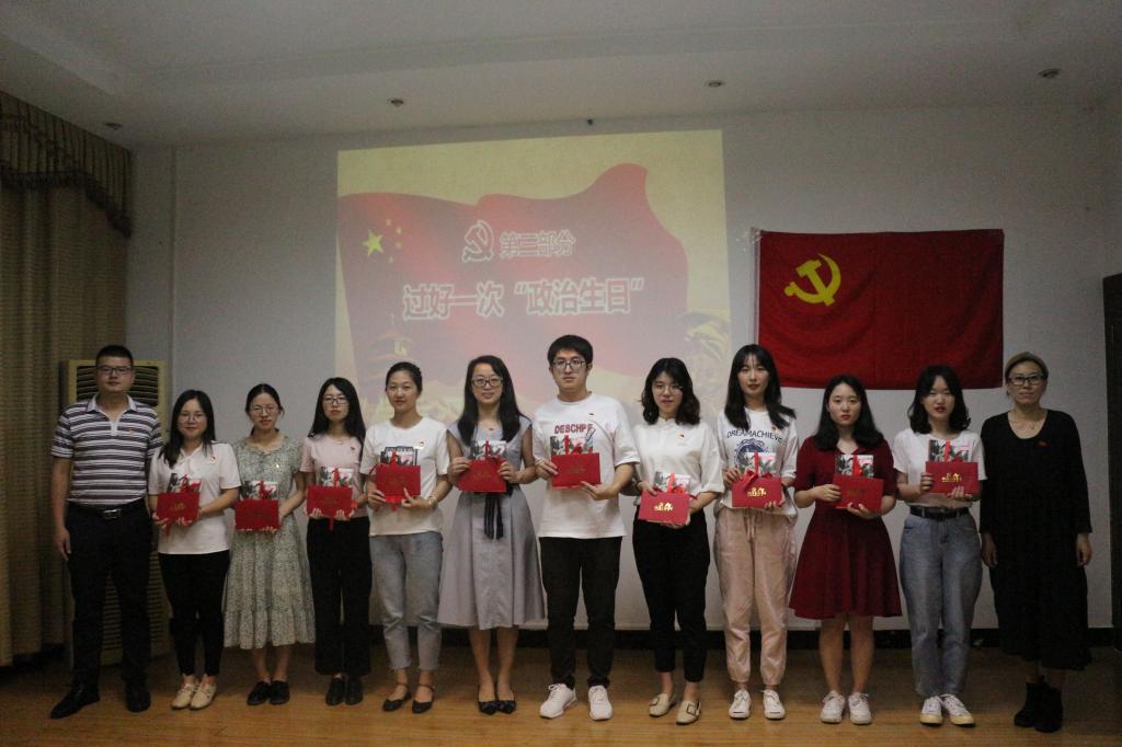 其中,为了给毕业班党员过好一次“政治生日”,生命科学与化学学院毕业班党支部选取一批五、六月份入党的党员同志,为他们送上一张“政治生日”纪念卡、赠送一本《习近平的七年知青岁月》作为政治生日礼物。参加政治生日会的预备党员郑雅婷表示,“过生日,表达对生命的尊重,体现的是人性;过政治生日,表达对党的忠诚,体现的是党性。这次特别的政治生日,让我更加清醒地认识到自己的政治身份,进一步强化了我的党员意识,坚定了我不忘初心、做合格党员的信心!”