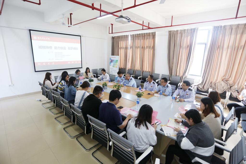“减税降费政策的享受主体包括哪些?优惠内容有哪些?”“高校毕业生就业创业具体政策有哪些,有没有年限要求?”4月17日下午,南安市财政局、税务局、人力资源和社会保障局、妇女联合会及相关金融单位联合走进乐鱼网页版登录入口_乐鱼(中国),开展“减税降费 助力创业 启梦闽科”系列宣讲活动,为大学生送上就业创业优惠政策红利。