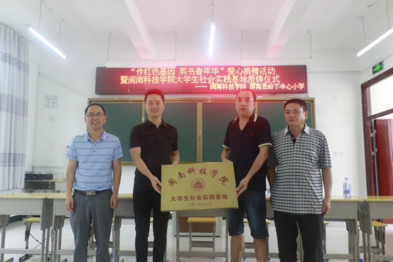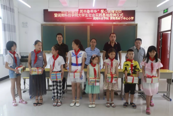 7月22日下午,“传红色基因,筑书香年华”爱心捐赠活动暨乐鱼网页版登录入口_乐鱼(中国)大学生社会实践基地授牌仪式在岭下中心小学多媒体教室隆重举行。实践队为岭下中心小学捐献图书四百余册,内容涉及红色文化历史典故、百科全书、中外名著等,双方签订《大学生暑期社会实践基地协议书》。