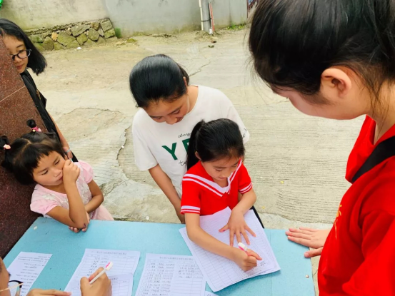 实践队队员在岭下中心小学开展为期一周的支教活动,开设中国诗歌、剪纸技艺、革命经典等各具特色的课程,弘扬中国传统文化和爱国主义精神。