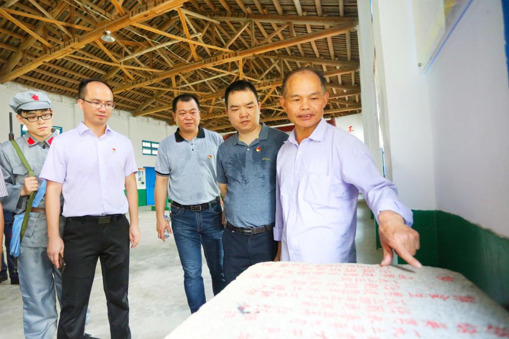 “烈士碑下,安眠着郭子仲、郭光灿等34位革命烈士。1935年,国民党派兵围剿了安南永边区,郭子仲等革命先烈经多次决战,英勇不屈,牺牲无数。”山城村越战老兵郭建生老先生介绍了中国工农红军闽南游击队第二支队以山城村为根据地开展地下革命斗争的历史,革命先烈的英雄事迹令在场党员感动落泪。
