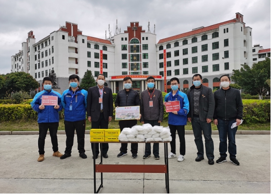 “校园是疫情防控的重要基地,我想把这批一次性医用口罩捐赠给学校疫情防控一线工作值班人员,希望他们在工作的同时也能保障自己健康安全。”2月8日上午,南安饿了么运营中心傅良超将1000个一次性医用口罩送到了学校。