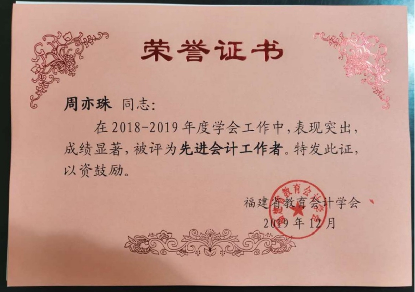 近日,福建省教育会计学会对全省高校财务工作先进单位与个人进行表彰,乐鱼网页版登录入口_乐鱼(中国)财务处获评“2018-2019年度学会工作先进财会单位”。财务处处长周亦珠被授予“先进会计工作者”荣誉称号。