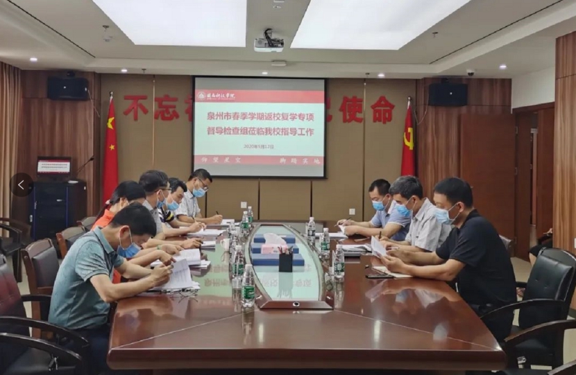 检查组严格对照《泉州市2020年春季学期高等学校复学准备工作整改验收评估细则》相关内容,查阅了学校复学准备工作的各项材料,并先后深入康美校区和美林校区,实地查看门岗、食堂、宿舍、教室、图书馆、实验室、医务所、医学观察区等重点区域,详细了解学校闭环管理、师生员工健康摸排台账、重点场所消杀、防疫物资储备、安全应急预案、复学工作准备进度等工作落实情况。