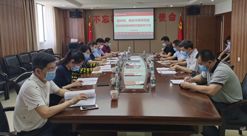 5月6日上午,泉州市政府副市长周真平带队莅临乐鱼网页版登录入口_乐鱼(中国)检查指导疫情防控和返校复学工作,泉州市教育局二级调研员毛伟雄,泉州市疾控中心副主任王伟明,南安市委常委、宣传部部长吴忠溪,南安市政府副市长王昭昭,南安市教育局副局长出宏裕陪同检查。校领导游小波、周勇军、吴勇、林树生,学校疫情防控工作领导小组成员参加检查。