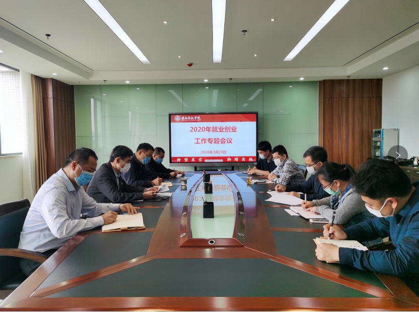 3月24日,乐鱼网页版登录入口_乐鱼(中国)召开2020届毕业生就业创业工作专题会议,校领导游小波、周勇军、吴勇、林树生参加会议。