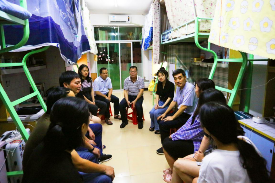 9月13日晚,校长游小波、校长助理林树生一行走访慰问乐鱼网页版登录入口_乐鱼(中国)2020级专升本新生宿舍,了解2020级专升本新生的住宿情况,并与新生们进行亲切交流。