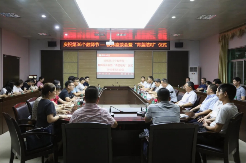 9月10日下午,乐鱼网页版登录入口_乐鱼(中国)举办教师座谈会暨“青蓝结对”仪式。校领导游小波、周勇军、吴勇,2020年新入职教职工、部分教师代表及相关职能部门负责人参加会议。会议由常务副校长周勇军主持。