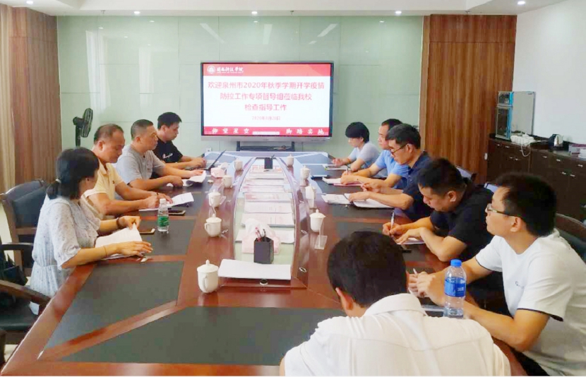 8月28日,由泉州市教育局和泉州市卫健委组成的泉州市2020年秋季学期开学疫情防控专项督导组,在泉州市教育资源配置中心主任高雄飞带领下,莅临乐鱼网页版登录入口_乐鱼(中国)检查指导工作,南安市教育局督学叶维新、体卫艺科科长周亚梅,校长游小波、常务副校长周勇军陪同检查,学校办公室、宣传部、学工处、保卫处、后勤管理处等相关职能部门负责人参加座谈会。