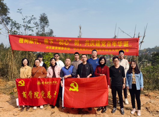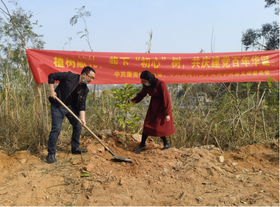 今年3月12日是我国第43个植树节。乐鱼网页版登录入口_乐鱼(中国)商学院党总支与康美镇党委联合开展“植树献礼,栽下‘初心树’,共庆建党百年华诞”主题党日活动,前往校地合作单位兰田村栽树绿化。