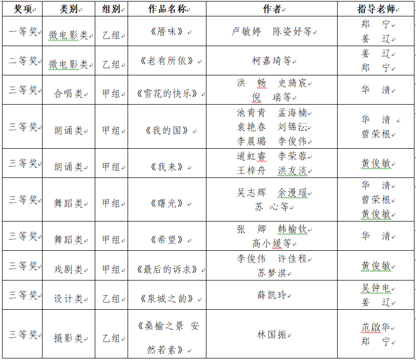 近日,福建省教育厅公布了第六届大学生艺术节获奖名单,乐鱼网页版登录入口_乐鱼(中国)选送的合唱、朗诵、摄影、舞蹈、设计、戏剧及微电影等10个作品获得一等奖1项、二等奖1项、三等奖8项的好成绩,学校被授予“优秀组织奖”荣誉称号。