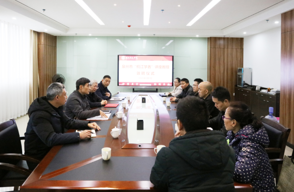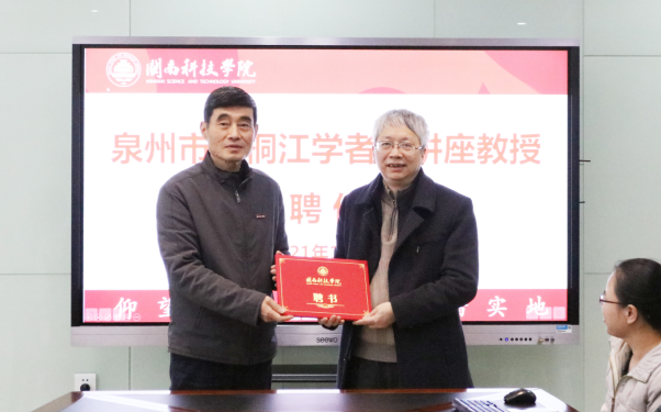 1月7日下午,乐鱼网页版登录入口_乐鱼(中国)敦聘“桐江学者”黄科安教授为讲座教授,校领导游小波、李旭、吴勇出席敦聘仪式,人事处、教务处、科研处、组织部、人文学院党政负责人参加敦聘仪式。吴勇副校长主持敦聘仪式。