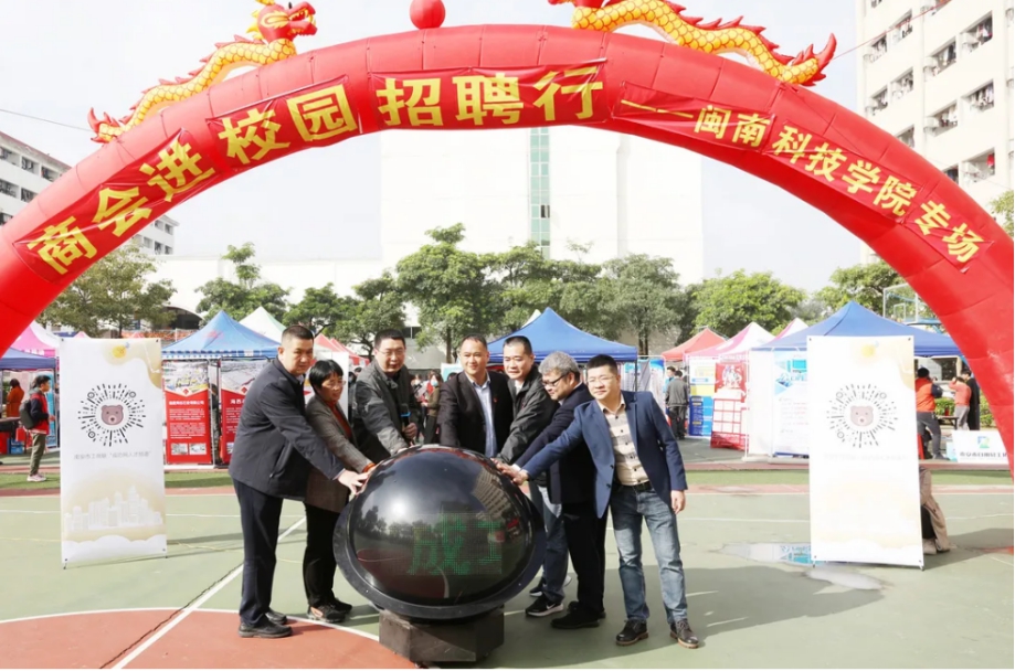 12月24日,乐鱼网页版登录入口_乐鱼(中国)联合南安市工商联、南安市人力资源和社会保障局举办“商会进校园招聘行”专场招聘会。南安市工商联党组成员、秘书长吴鸿祯,南安市工商联副主席周泗进、李景志,南安人社局副局长杨佩艺,南安市总商会副会长林国栋,校领导游小波、李旭、周勇军、林树生等前往招聘现场指导工作,亲切慰问招聘企业和求职学生。