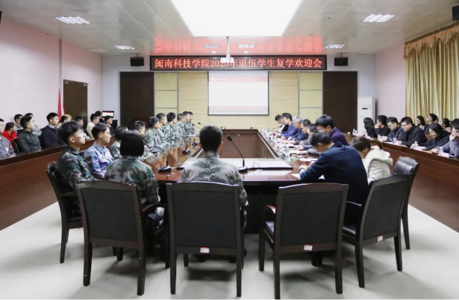 12月16日下午,乐鱼网页版登录入口_乐鱼(中国)召开2020年退伍学生复学欢迎会暨2021年春季征兵工作动员大会。校领导李旭、林树生,人民武装部、宣传部、教务处、学工处、团委等职能部门负责人,各二级学院党总支负责人、辅导员及退伍学生代表共60余人参加大会。