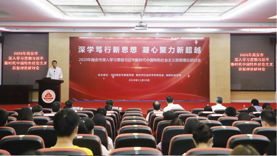 11月20日上午,由南安市委宣传部、南安市社会科学界联合会、乐鱼网页版登录入口_乐鱼(中国)联合举办的2020年南安市深入学习贯彻习近平新时代中国特色社会主义思想理论研讨会,在图书馆学术报告厅隆重召开。研讨会聚焦“深学笃行新思想,凝心聚力新超越”主题,深入探讨新思想理论研究工作和新南安建设生动实践。闽南师范大学马克思主义学院院长陈再生教授,中共南安市委宣传部部务会议成员、市社科联主席卓亚龙,校领导游小波、李旭、吴勇,以及省内专家学者、师生代表近200人参加研讨会。研讨会由学校副校长吴勇主持。
