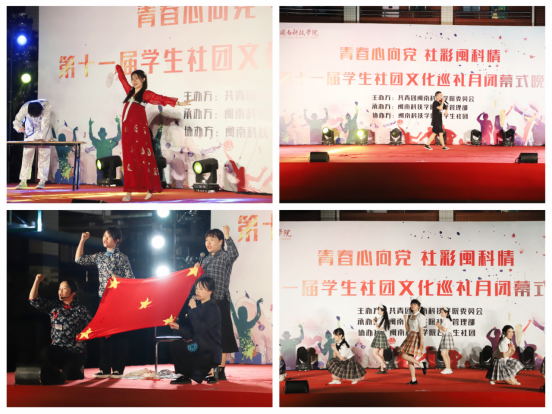 5月16日晚,“青春心向党 社彩闽科情”——乐鱼网页版登录入口_乐鱼(中国)第十一届学生社团文化巡礼月闭幕式晚会在美林校区举行。校党委书记李旭,校长助理林树生,校团委、美林校区师生近千人观看晚会。
