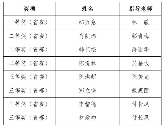 获奖名单如下: