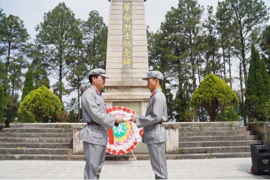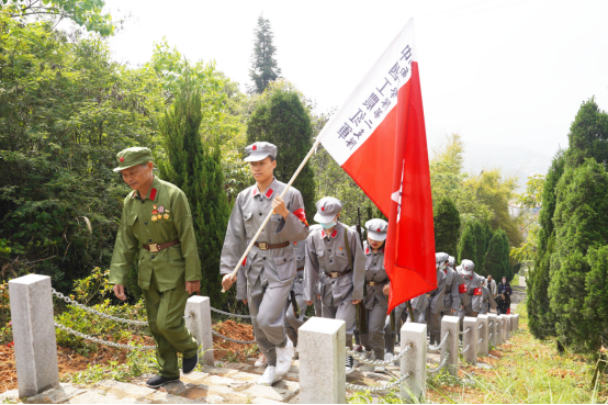 情报印刷所、枪械修理所、红军洞、红军路……第二次国内战争时期留下的红色印记遍布山城。全体党员来到革命烈士纪念碑前,在庄严的国际歌声中鞠躬默哀,并向革命先烈们敬献花圈,表达缅怀之情。党员们还面向党旗,在山城村越战老兵郭建生带领下重温了入党誓词,表达了对党的忠诚,积极工作,为共产主义奋斗终身的使命感。